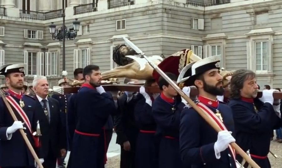 Si has elegido un hotel cerca del Palacio Real, como ApartoSuites Jardines de Sabatini (Cuesta de San Vicente, 16), sólo tienes que cruzar una calle para ver el Cristo de los Alabarderos, que sale de palacio a las 19h y culmina en la Iglesia Catedral Castrense. Todos los horarios y recorridos de las procesiones los puedes consultar en el programa de procesiones 2019.