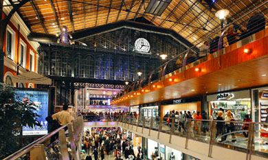 Antigua estación de tren, es el único Centro comercial que se encuentra en el centro de la ciudad con sus 110 tiendas, restaurantes y cines.